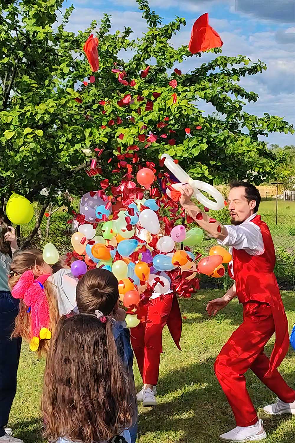 Яскраве завершення свята – це вибух із конфетті та солодощів, які обсипають іменинника! Велика яскрава повітряна куля з сюрпризами всередині! Такий – не шкода луснути!