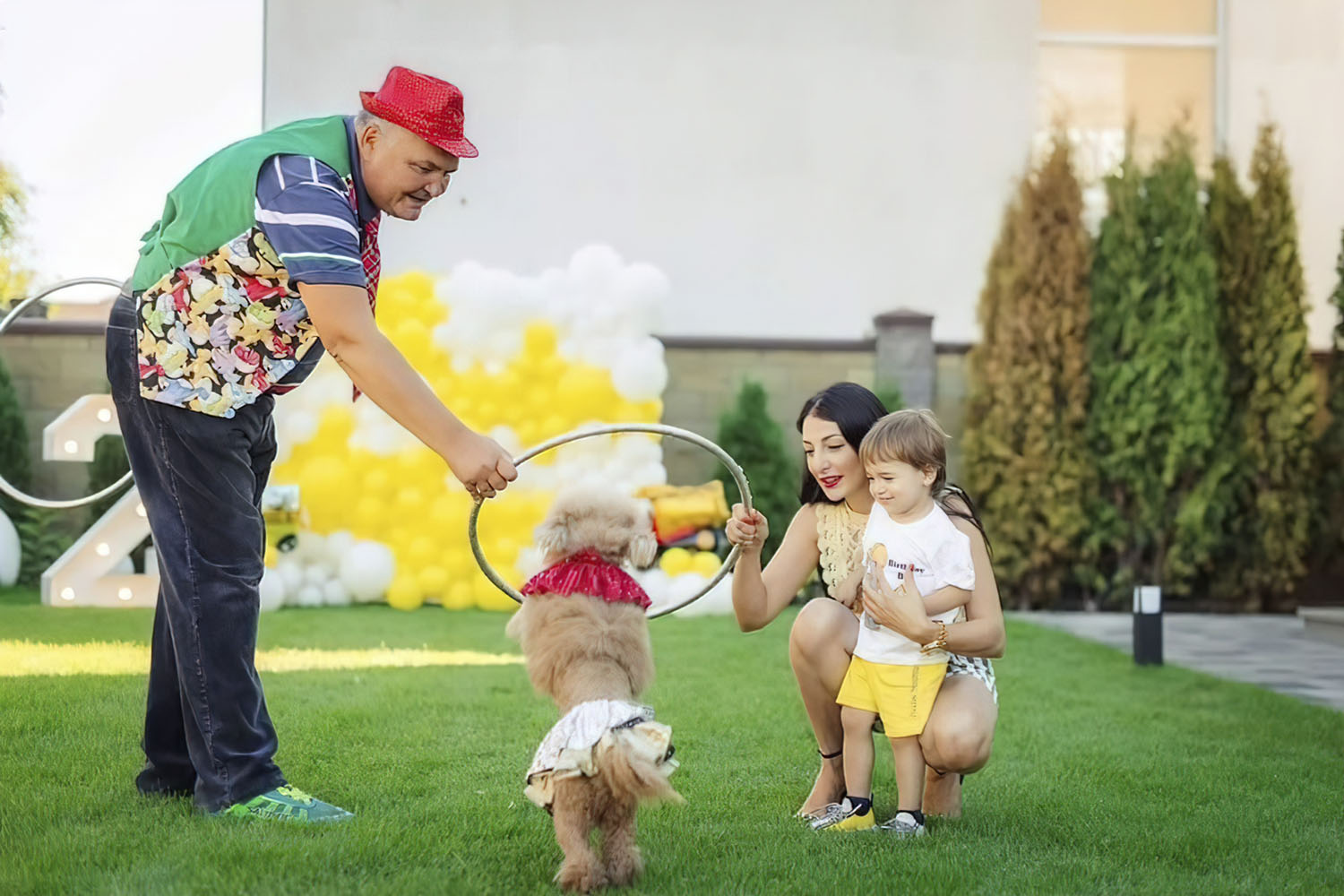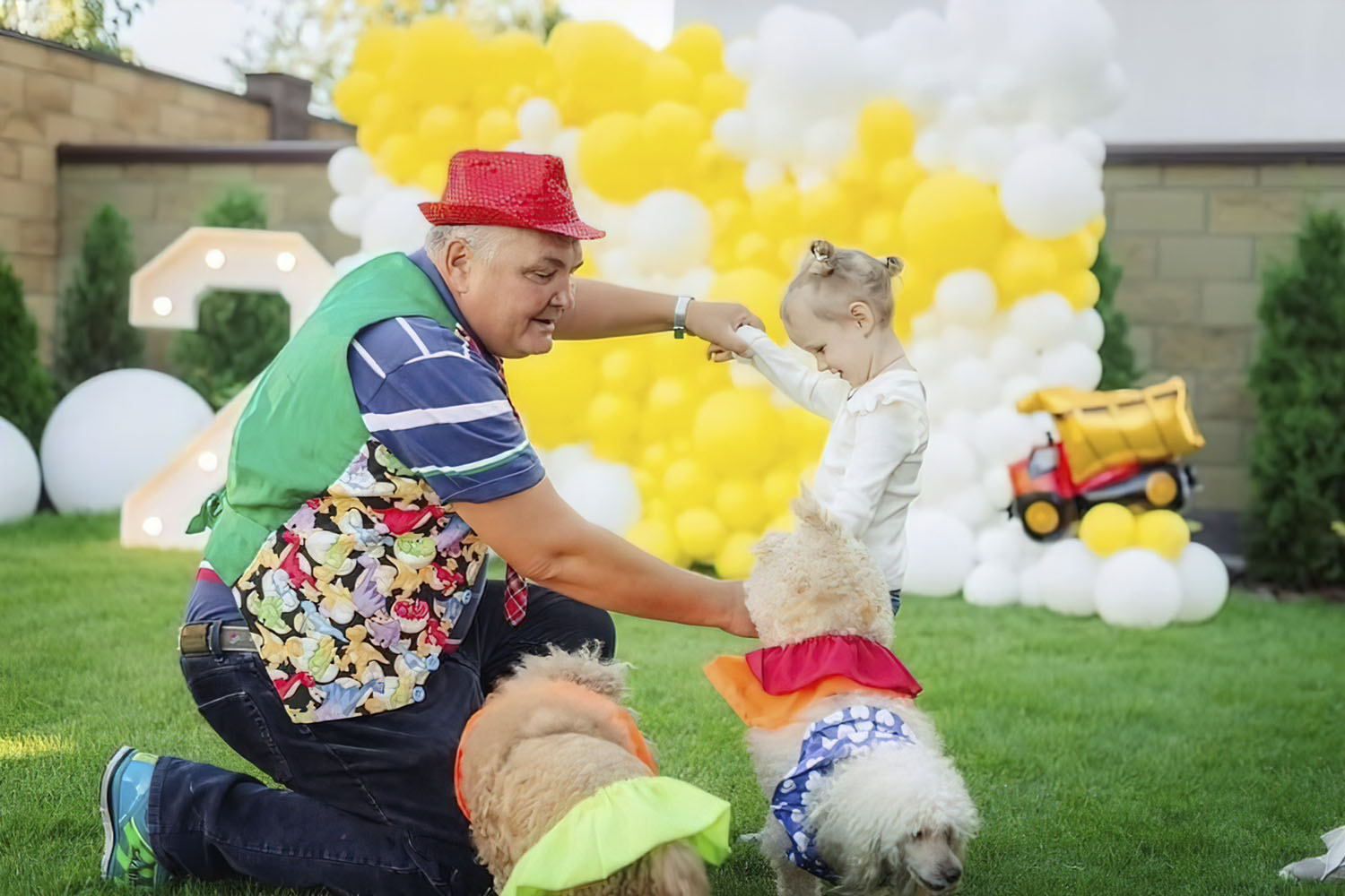Ну хто не любить пухнастих улюбленців? Запросіть на свято дресирувальника з його чотириногими друзями, які продемонструють для вас чудеса собачої акробатики! Усі песики щеплені та не кусаються!