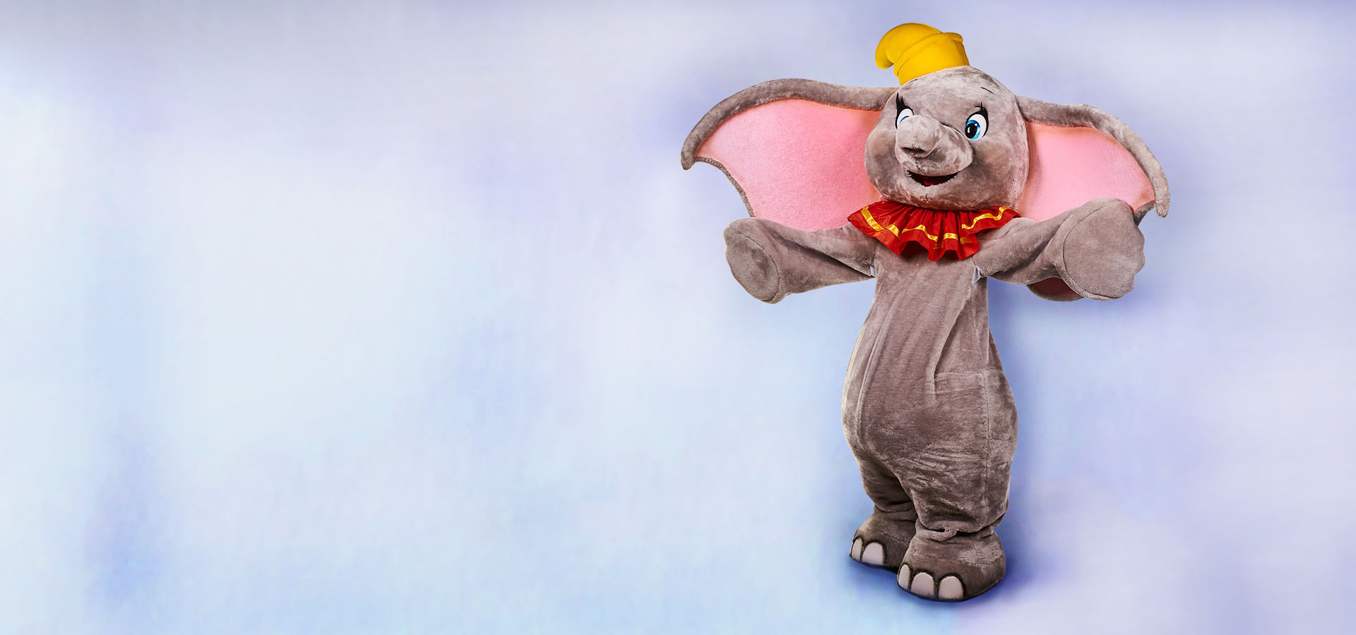 Слоненя Дамбо – єдиний у світі літаючий слон! Один із найкультовіших персонажів Діснея – на вашому святі! Дитяча вечірка, виписка з пологового будинку, день народження – Дамбо змахне вухами і миттю виявиться у вас!